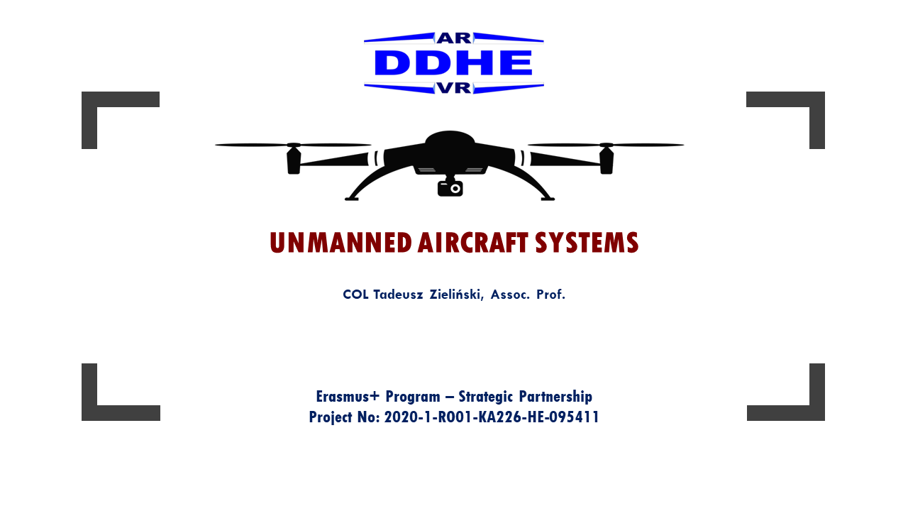 - Introduction to classifications, typology, components, regulatory aspects and the scope of employment of unmanned aircraft systems (UAS) in the civil and military sphere
