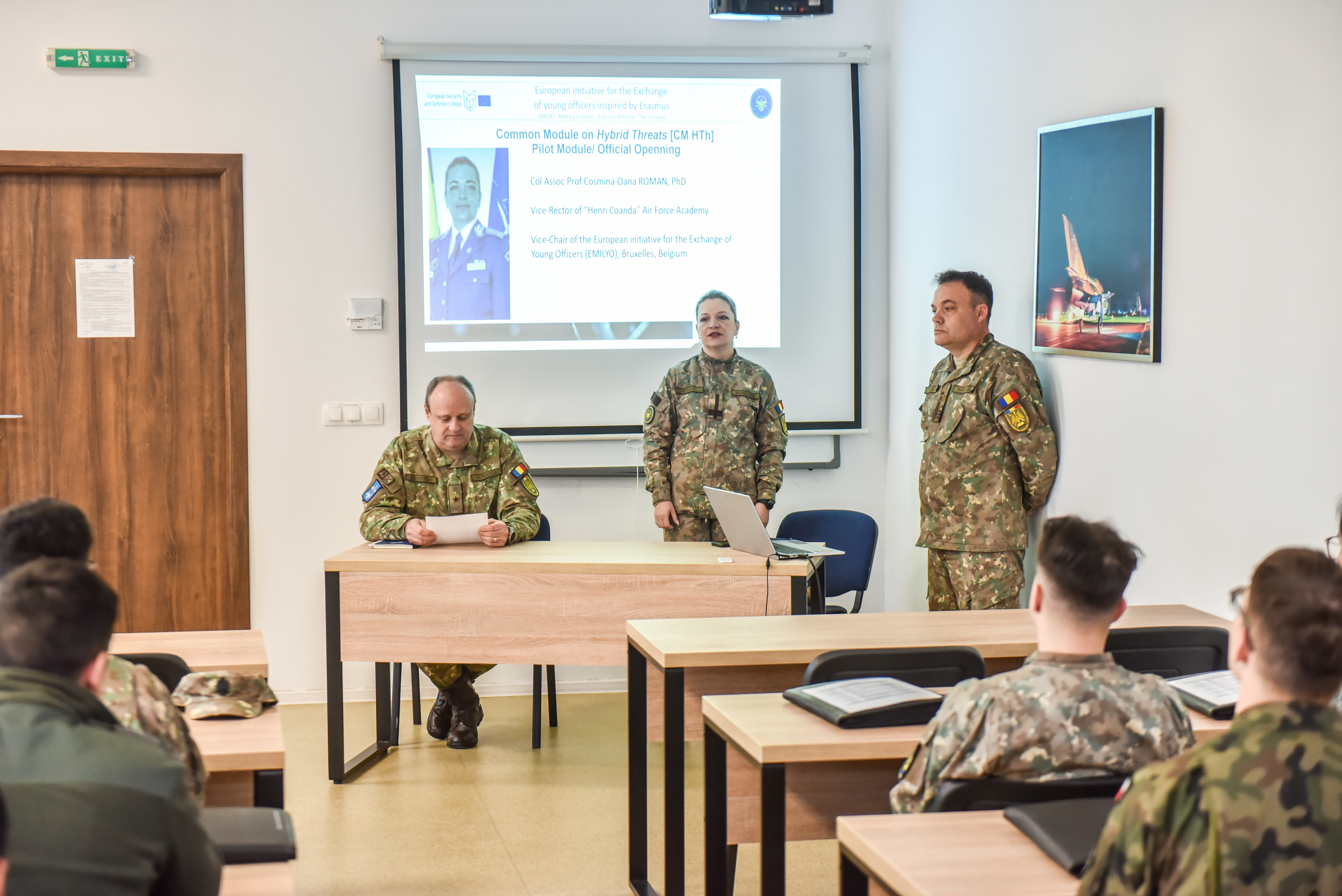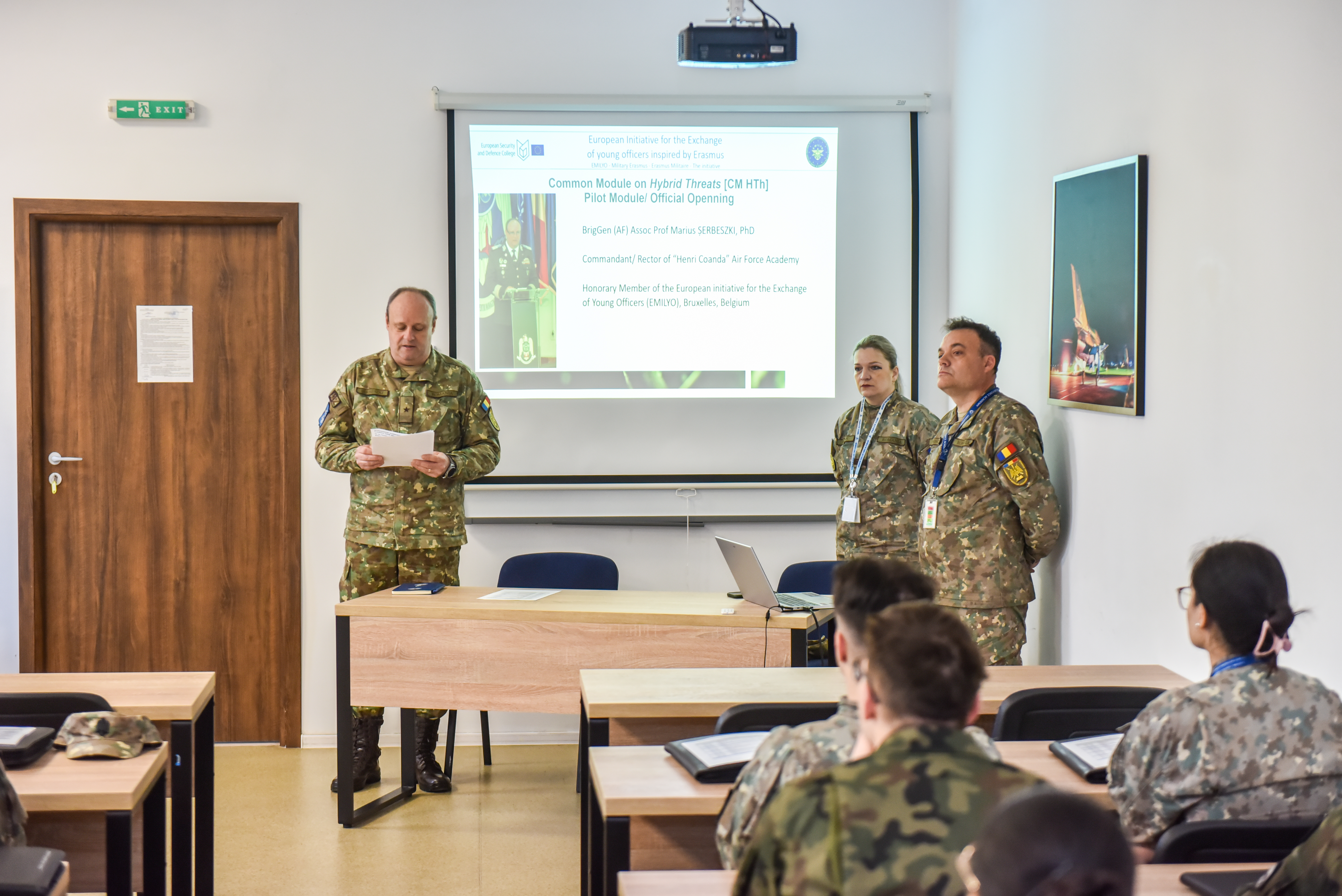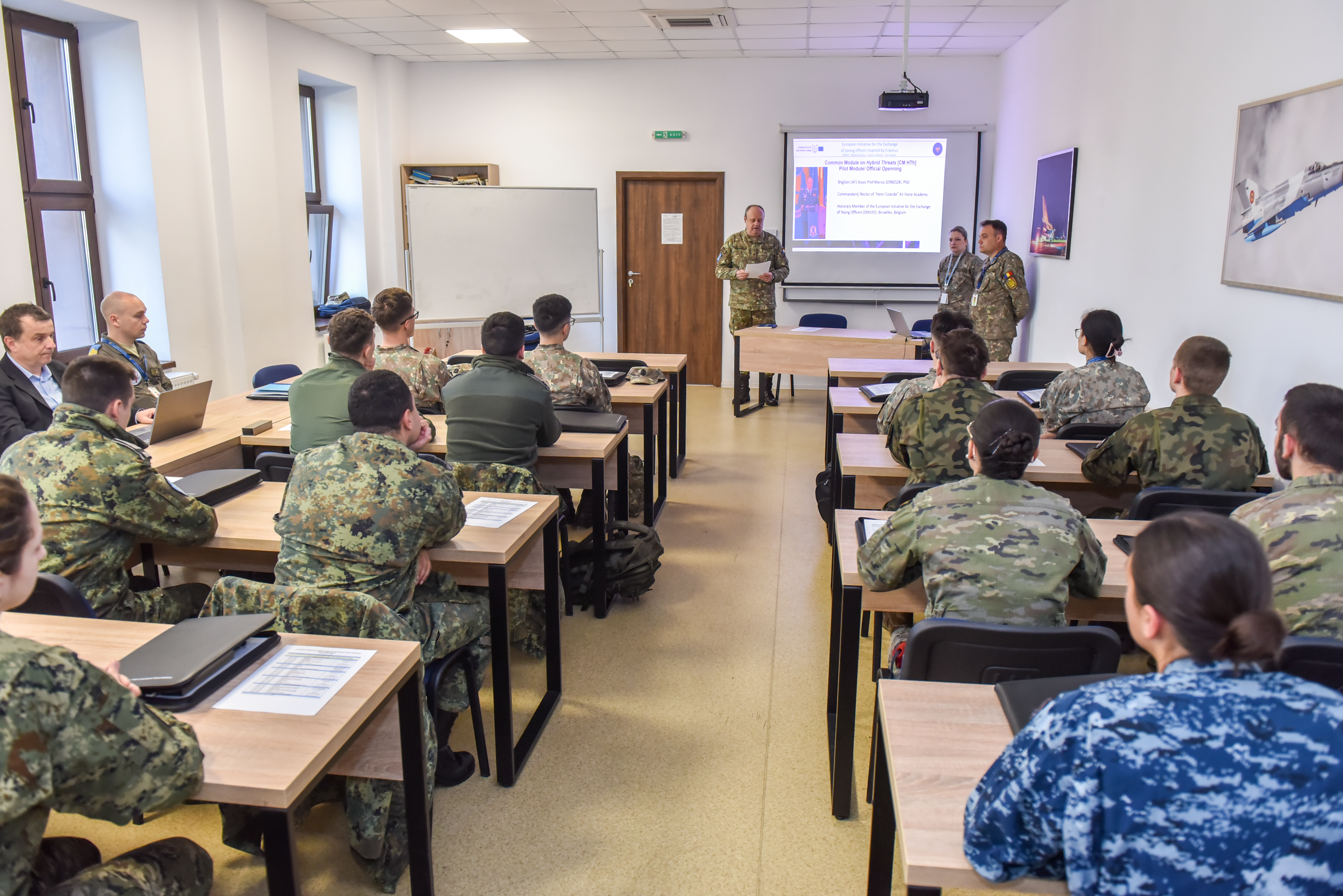 Luni, 16 martie 2026, comandantul/ rectorul Academiei Forțelor Aerienme „Henri Coandă”, gl.fl.aer. conf.univ.dr. Marius Șerbeszki, a deschis Modulul Comun „Amenințări hibride”, organizat în cadrul Liniei (omonime) de dezvoltare LoD-21 a Grupului de Implementare (IG) al Inițiativei Europene pentru Schimbul Tinerilor Ofițeri Militari (EMILYO) și a Colegiului European pentru Securitate și Apărare de la Bruxelles.