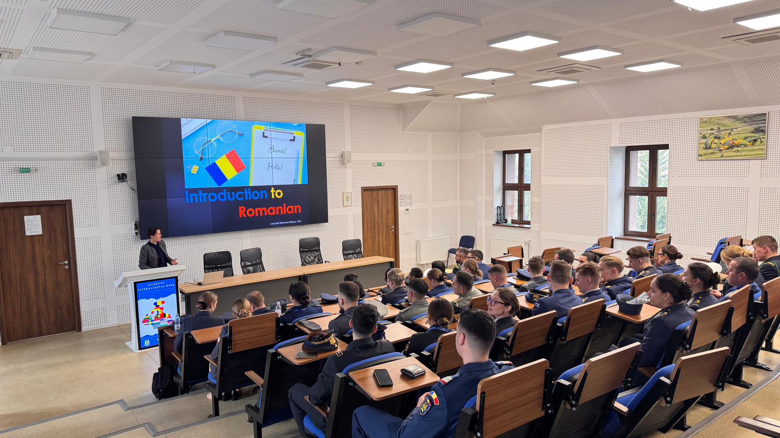 On Wednesday, March 25, 2026, the third day of Students’ International Week began with the participants attending the first part of a leadership course held at "Henri Coandă" Air Force Academy’s shooting simulator facilities, where they had the opportunity to develop leadership skills and familiarize themselves with the training environment, including the use of simulators and the virtual shooting range.