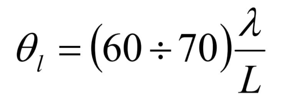 The width of the directivity feature is directly proportional to the wavelength and inversely proportional to the dimensions of the antenna. To obtain a narrow feature, a wavelength should be chosen as small as possible for a reasonable size of the antenna. For example, in the case of antennas with parabolic reflector, between the width of the Θl directivity characteristic, the wavelength λ and the size of the reflector L there is the following formula: