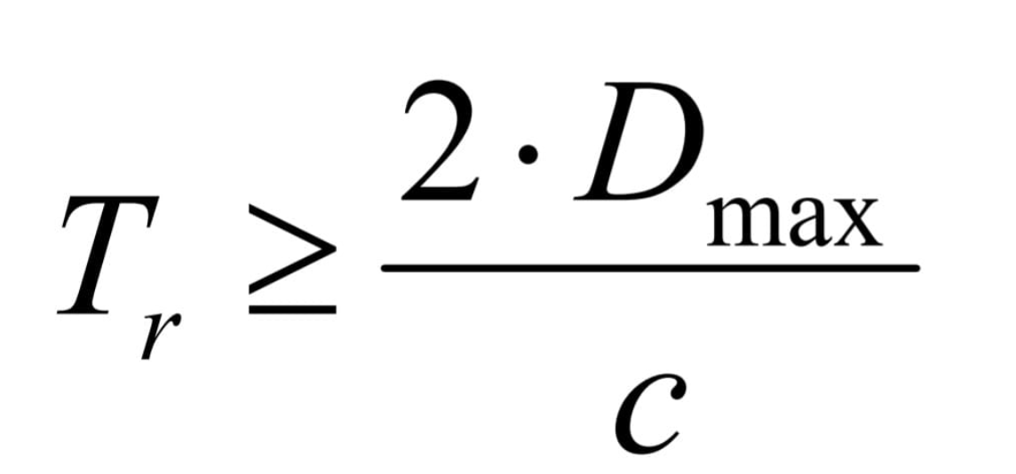 The repetition frequency of the Fr pulses, represents the number of pulses emitted by the radar In the unit of time. The inverse of the repetition frequency is called the repetition period of the the pulses Tr, and represent the duration between two successive synchronizing pulses. It is observed that the repetition frequency is a parameter of the synchronizer.
