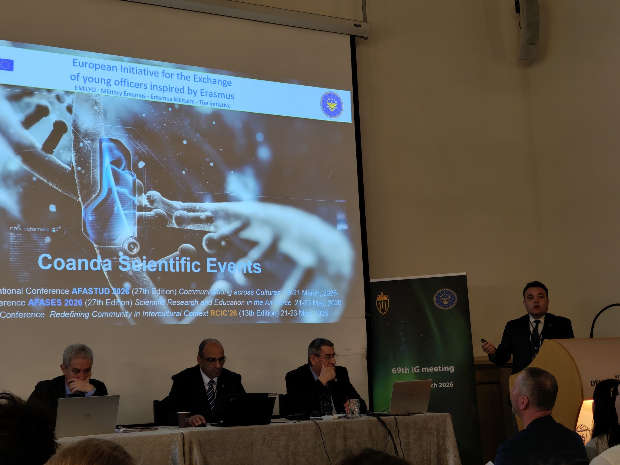 În perioada 02-04 martie 2026, o delegație din cadrul Academiei Forțelor Aeriene „Henri Coandă” a participat la cea de-a 69-a întâlnire a Grupului de Implementare (IG), organizată în cadrul Inițiativei Europene pentru Schimbul Tinerilor Ofițeri Militari (EMILYO). Evenimentul s-a desfășurat la Universitatea Norvegiană de Apărare din Oslo, Norvegia, reunind reprezentanți ai instituțiilor militare și academice din numeroase țări europene.
